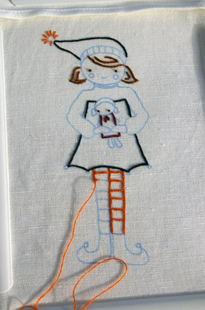 Fun fun. The design is an ’06 Christmas freebie by Hillary Lang, and there is a matching boy-elf, so I’ll be stitching the pigeon pair to make up as Christmas gift bags for the kiddos. Cute, huh?