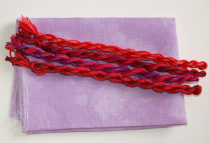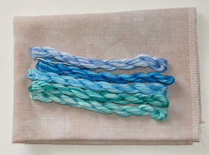 And, just in case you aren’t all pictured out, here are pics of the three pay-it-forward packages that I know have arrived. (Should check up on the other two – Angi, Debbi, are yours there yet?). I dyed a fat 1/8 of linen or evenweave, and some stranded cotton (plus a perle for Jenna) for each person in their colour preferences. So far, so good, everyone seems to like these: