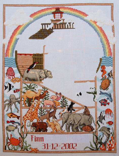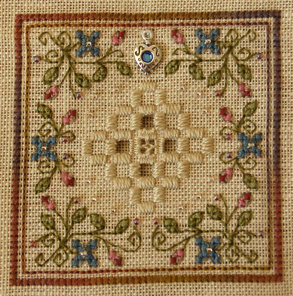 And that, boys and girls, marks the end of so-called ‘obligation‘ stitching for me. For the time being, anyway. I joined this round robin because I knew I would go through a bit of a stitching slump while Niamh was little, and I figured this would be a good way to spur me into doing a little bit, better than nothing at all. But I have to confess, I’m not sad to see then end of it. I was growing a bit resentful of the time spent stitching on other people’s work (though I will no doubt feel differently once my own UFO gets home, and I see first-hand how much has been worked on it). Each time as the deadline approached, I felt pressured to stitch, even though I didn’t necessarily feel like doing so. I have done very little other stitching for the whole year so far – I completed the Hardanger exchange, I’ve spent a couple of hours on Lilly, and just in this last week I’ve come very close to a finish on one of my smaller pieces (hopefully I’ll dance this weekend). But that’s all. So I’ve decided to opt out of any more exchanges or round robins for at least the rest of 2007. How much or how little stitching I will actually do, I can’t predict, but I just don’t want to feel the pressure of deadlines for a little while.
