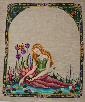 Next, the final UFO that I stitched on for the round robin. This is Tracey’s Royal Holiday. It was nice to finish on another Mirabilia design:
