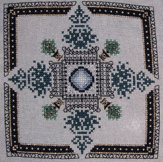Everything went swimmingly from the crown down to the waist. When I hit the endless blues and whites of the gown, I stalled. A lot. Over the years between then and now, WQ has re-emerged a number of times, been worked on some more, and then banished to the cupboard once again.