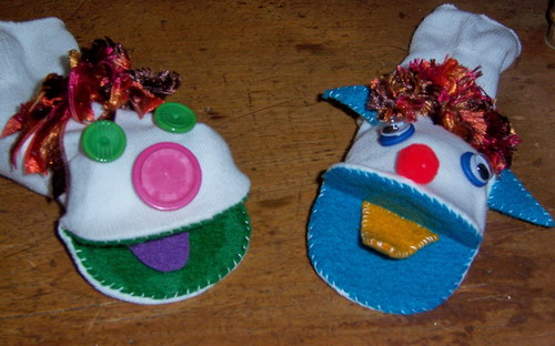 Ha… lured you in with the promise of ‘fascinating’, didn’t I?! Well, maybe it’s not fascinating so much as ‘quirky’. Finn and I had a great time making sock puppets yesterday. Well, when I say we made them, I of course mean I made them. Finn was the project co-ordinator, and made all of the important colour decisions. So may I introduce to you ‘Pip’, on the left (otherwise known as the ‘trial run’, in which we discovered that glue didn’t cut it, and I was in fact going to have to use needle and thread), and ‘Loggin’, on the right, who has pointy ears “just like you Mum”! (Yes, I do indeed have a pointy ear… just one though. I must show you sometime :giggle: )
