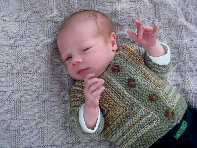 Rohan was 3 weeks old in that pic – he’s long outgrown that gorgeous jumper. He has a bunch of other knits from Mum that I should devote an entire post to, really. I love, love, love the blankie, it is getting a lot of use.