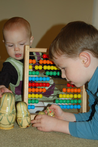 And here we have our gorgeous 1 year old and big brother on her birthday – note the Russian dolls we gave her. I must get a good photograph of these to show you, they’re beautiful.
