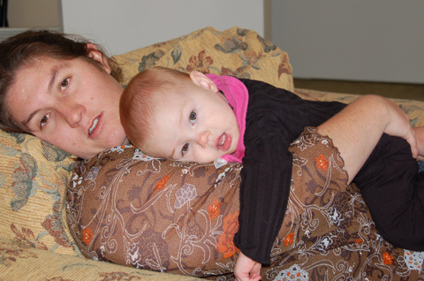 And then there’s this last one – which is something I wouldn’t normally show you, as it is such an unattractive shot of myself (note bags under eyes, and yes, my eyebrows need serious attention – and yes, if you look closely, you can see Niamh has inherited those same crazy eyebrows, poor girl!) But something about this photograph really works for me – it was taken the afternoon of her birthday, after we experienced a pretty rough night following the party, and I think it sums up the feeling of the last year pretty succinctly, don’t you?